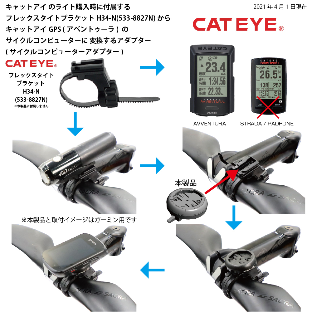 キャットアイのライト購入時に付属するフレックスタイトブラケット H34-N(533-8827N)からCATEYE GPS AVVENTURAのサイコンへ変換する為のサイクルコンピューターアダプター