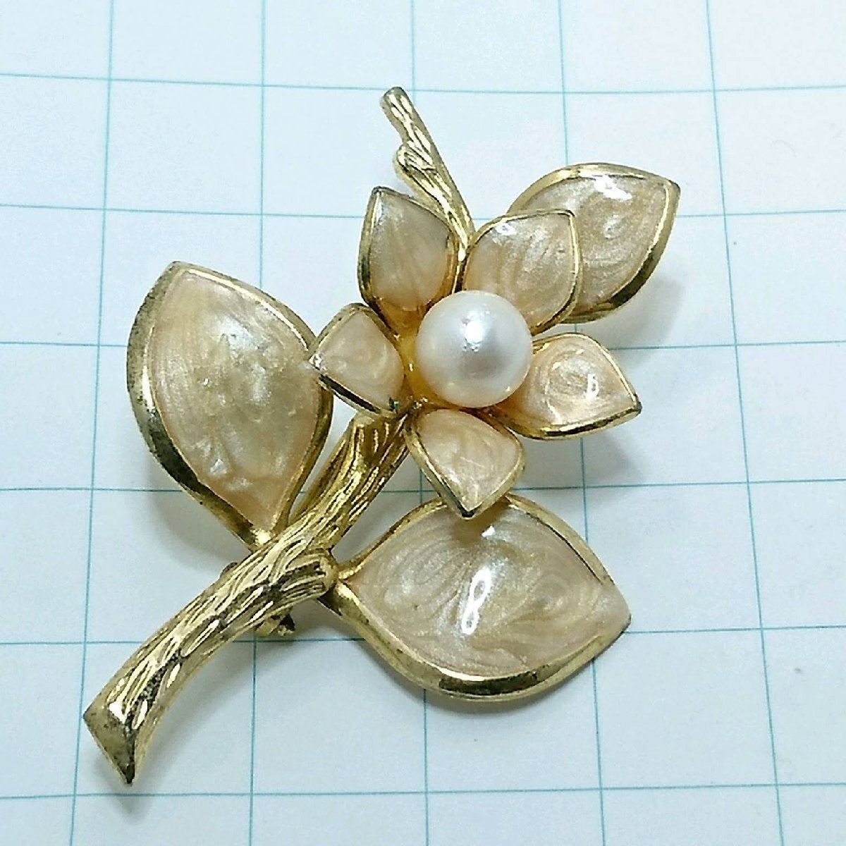 送料無料)ビンテージ☆七宝仕上げ お花モチーフ☆アンティークブローチ A15378