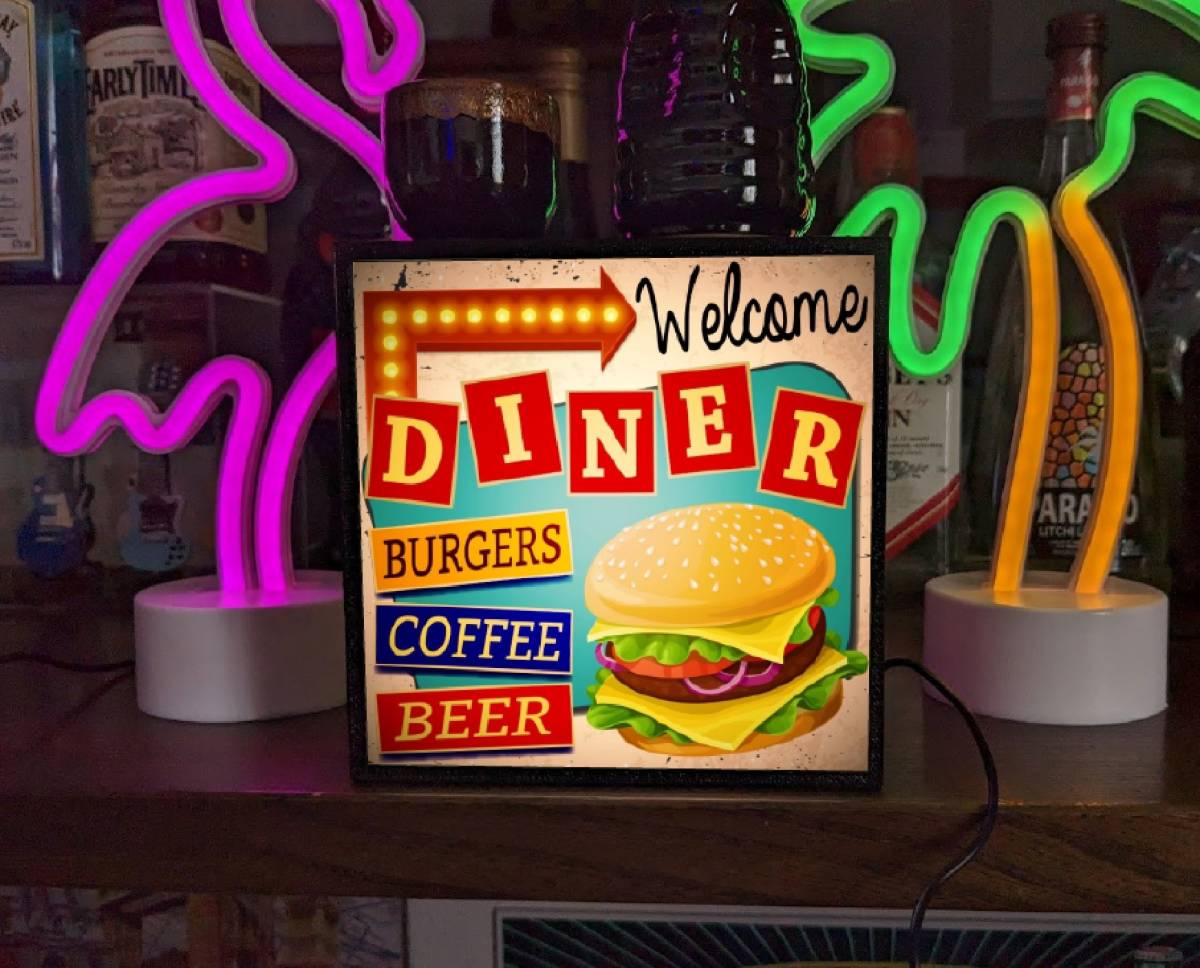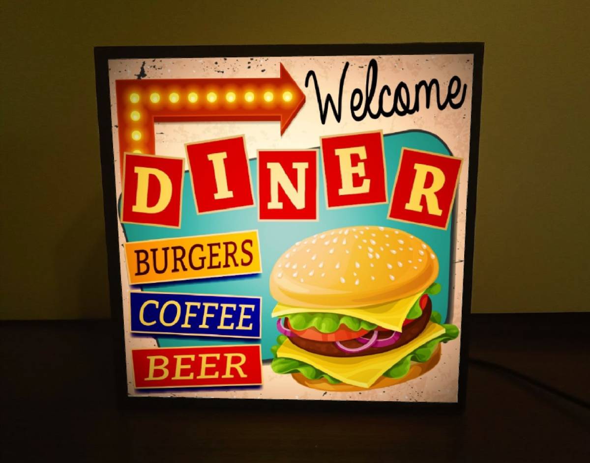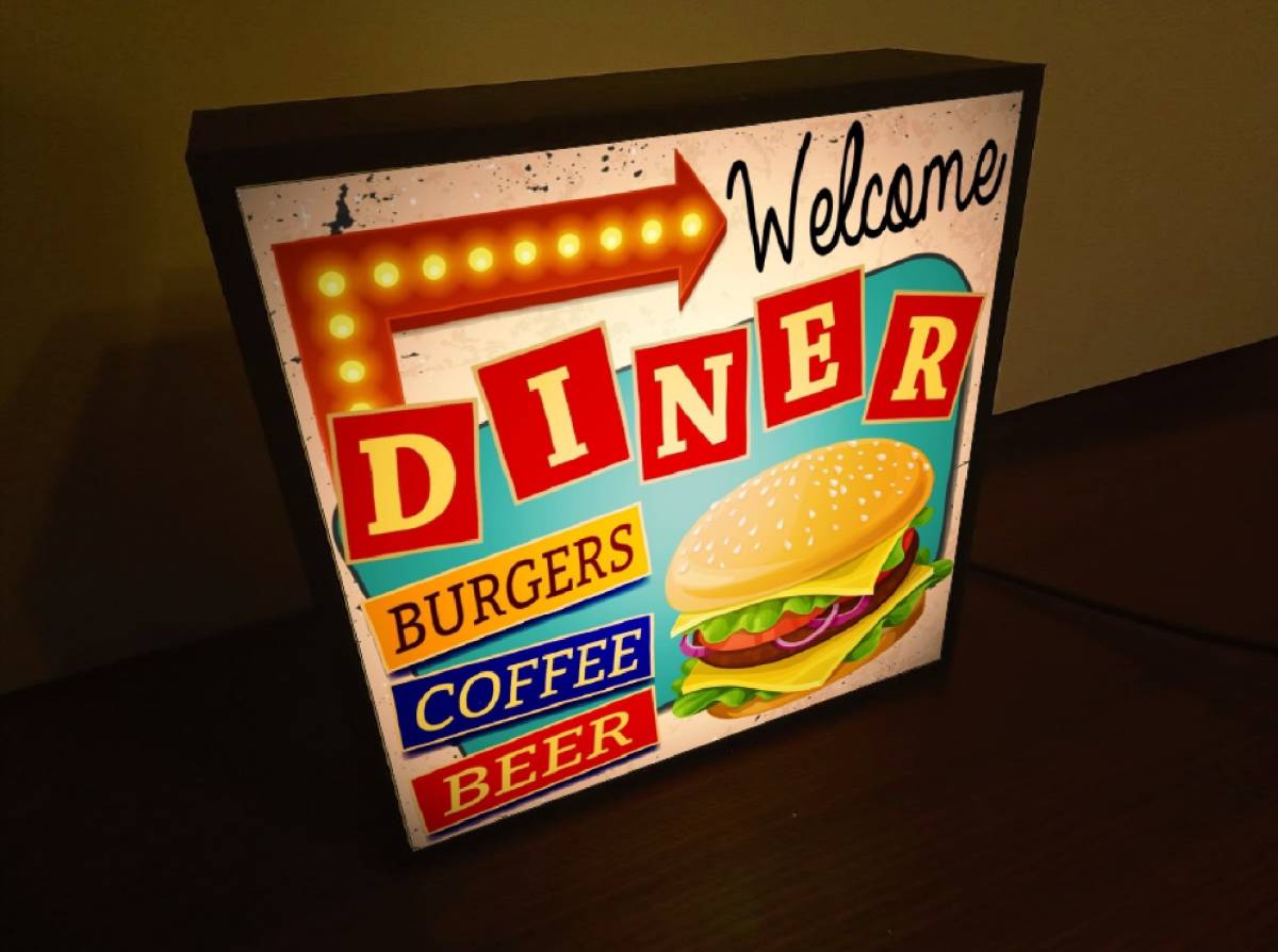 ダイナー ハンバーガー カフェ ビール コーヒー BAR ドライブイン ルート66 サイン 看板 置物 アメリカン雑貨 ライトBOX 電飾看板 電光看板