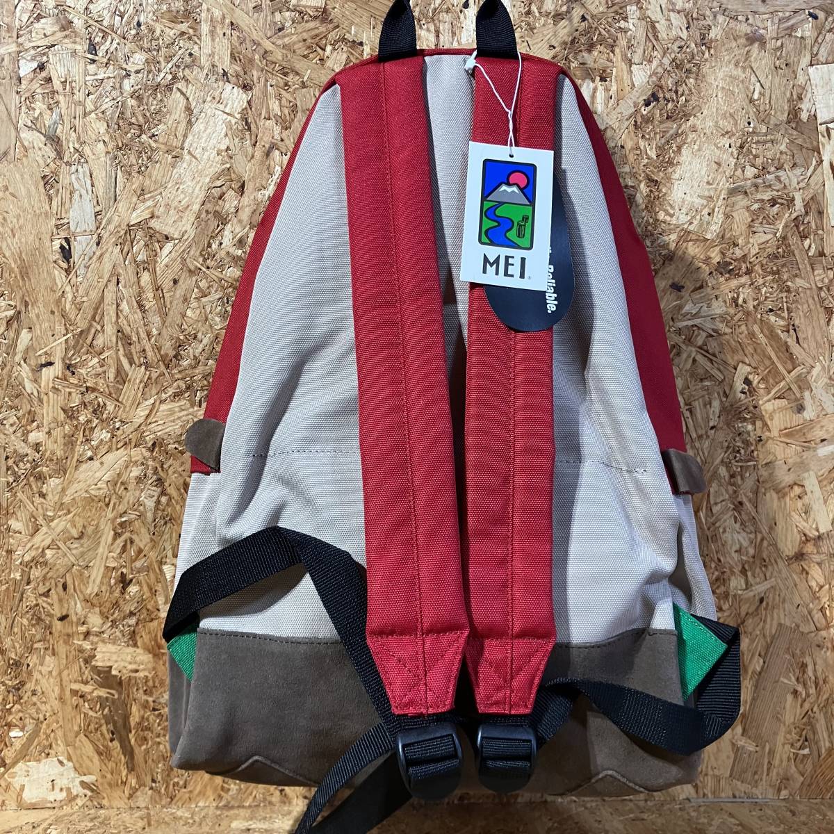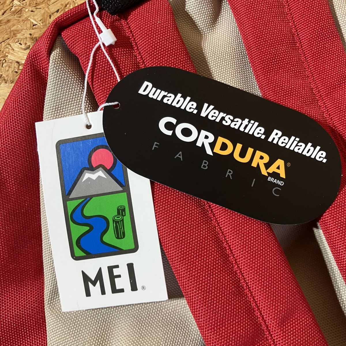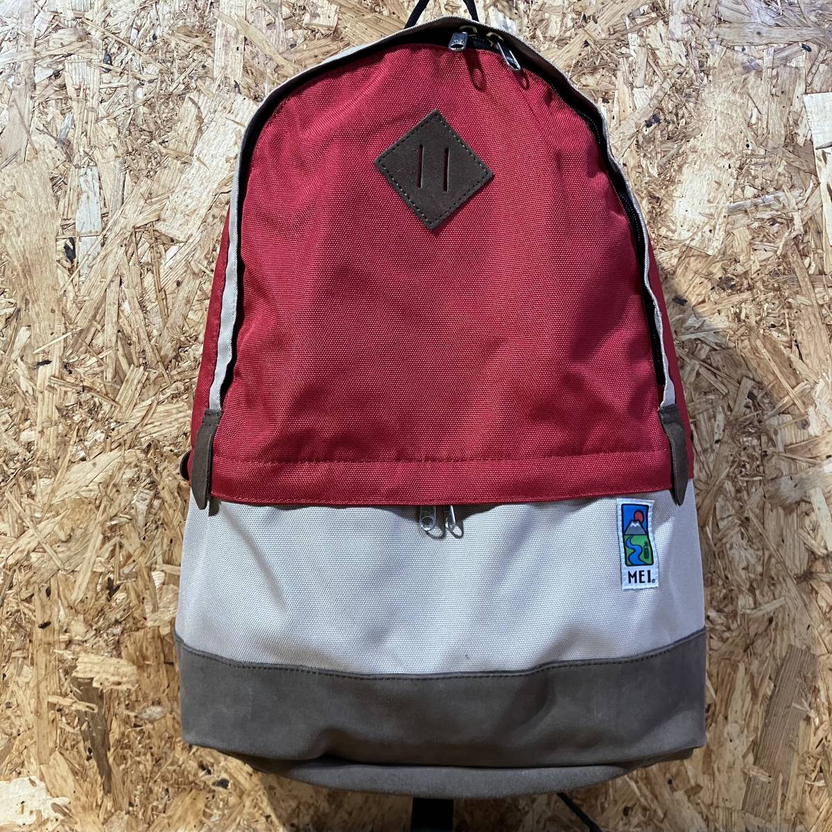 1973年にカリフォルニアで設立されたアウトドアブランド「MEI」とのコラボレーション。 ジップや底の切り替え部分の巧みな配色使いが特徴的な捻りの効いたデザインのバックパック。 軽量で耐久性に優れたコーデュラナイロンを採用。