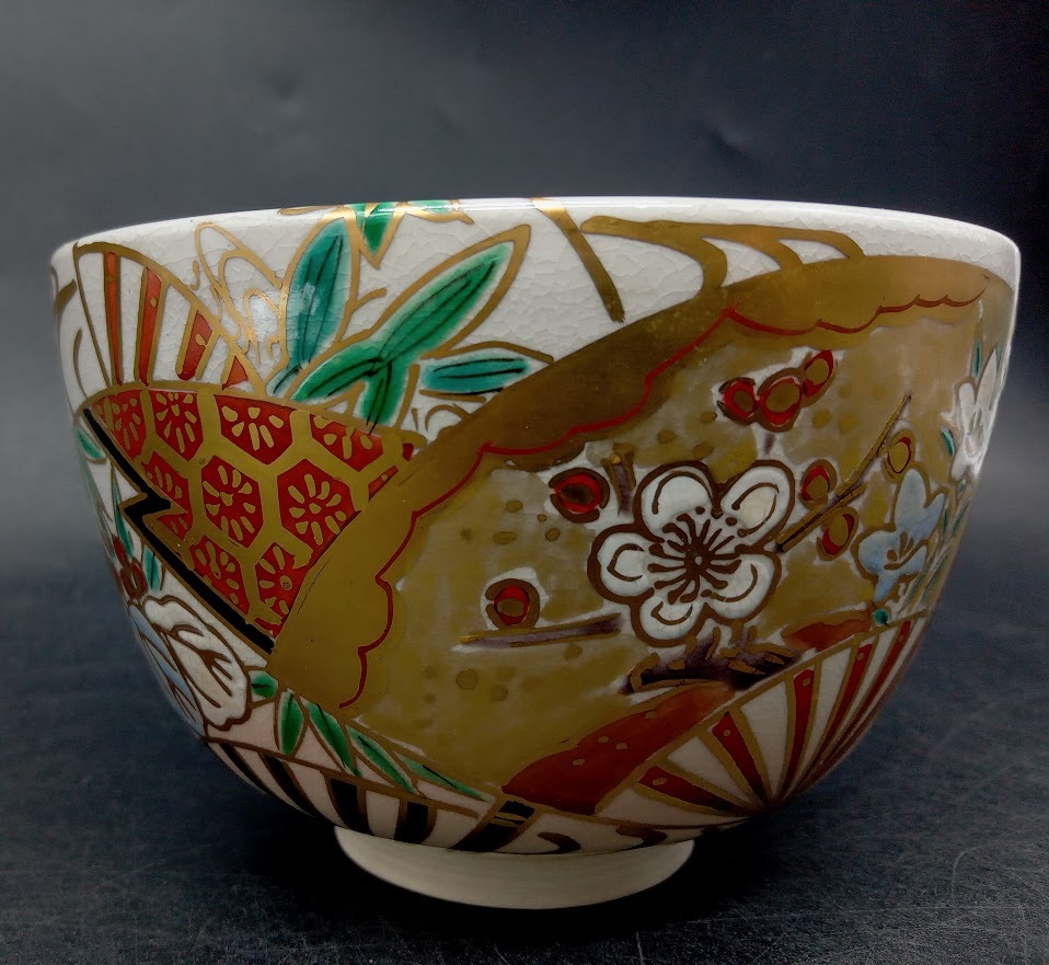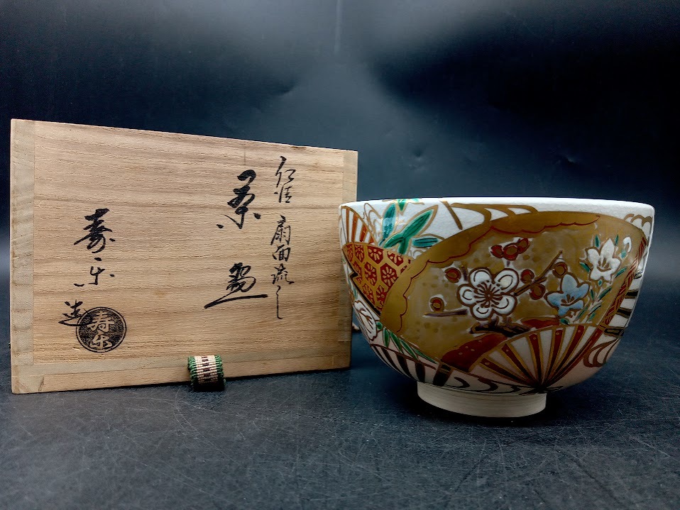 ▽ 寿禾 造 扇面流し 茶碗 / 茶道具 抹茶茶碗 茶器 陶印 お点前 茶席 茶事 茶会 落款 在銘 銘 お茶碗 真作