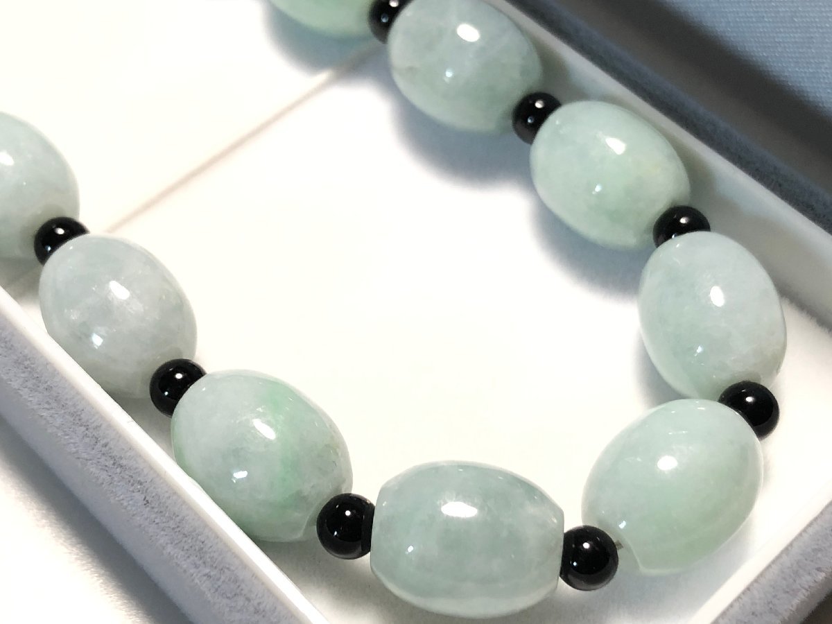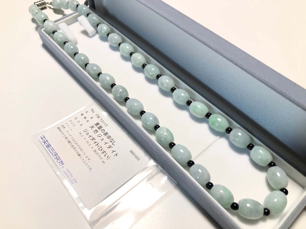 本翡翠を使用した、オーバルデザインのネックレスです。鑑定済み・樹脂含侵はありません。美品、ソーティング付属です。