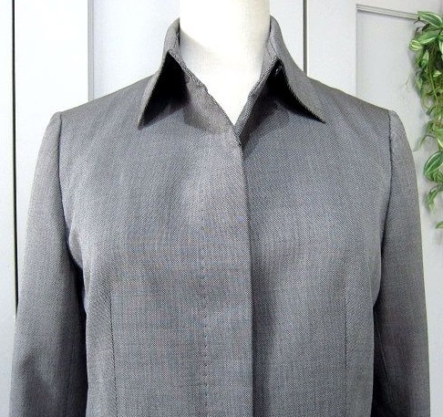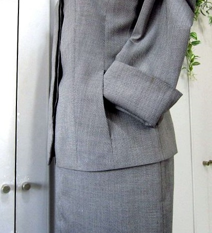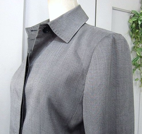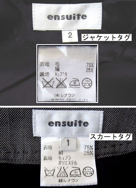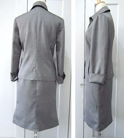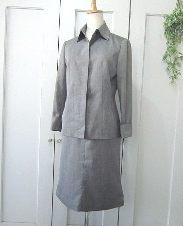 ブランド ensuite エンスウィート ㈱レナウン 特徴 落ち着きのあるグレーきちんと感のあるスカートスーツ ウール・シルク(絹)素材 ジャケットは洗練された比翼仕立て。両前ポケット付 フロントボタン5つ留め、両袖口にスリット入り。 スカート 後ファスナー開き