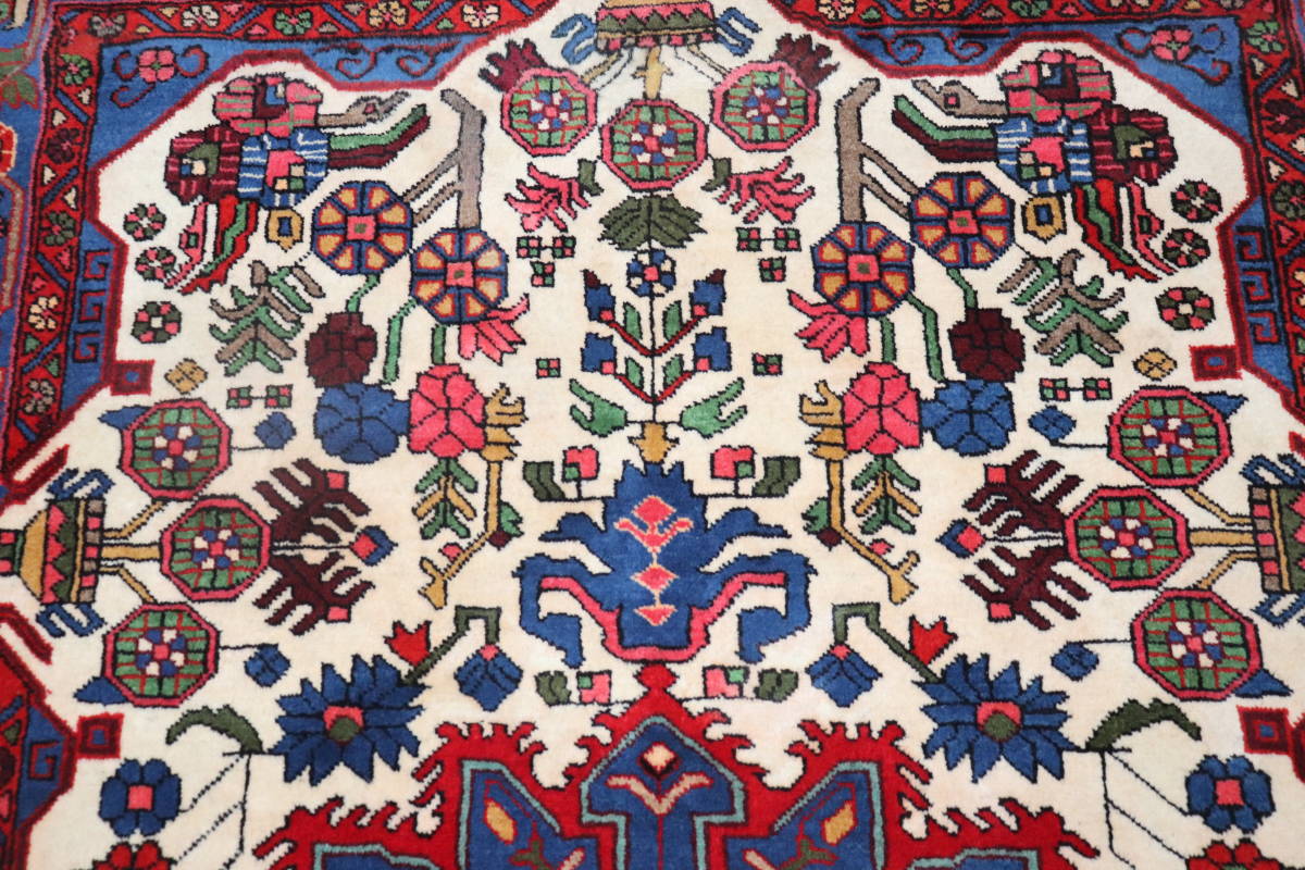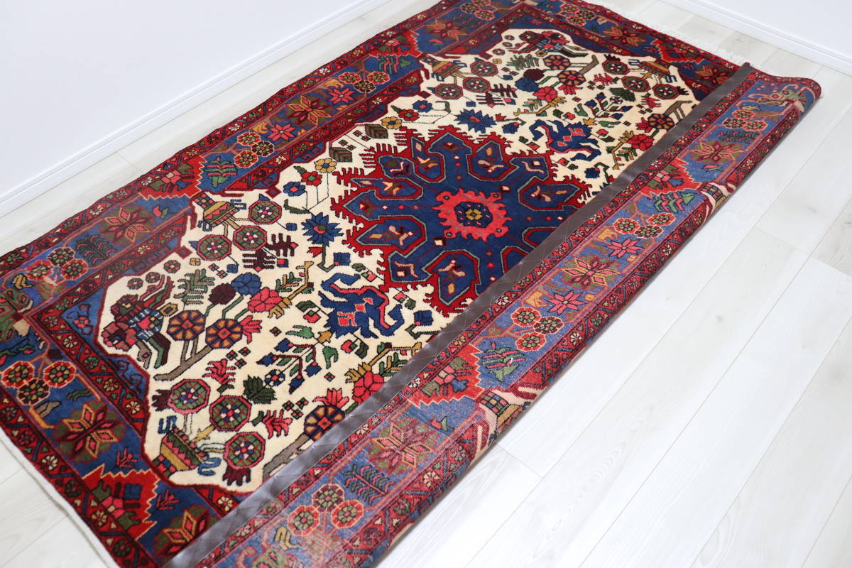 本作品は、イラン・ナハバンド地方でウール素材のペルシャ絨毯です。厚みが13mm以上あり、耐久性に優れるだけでなく、柔らかく快適な手触りと踏み心地を楽しめます。