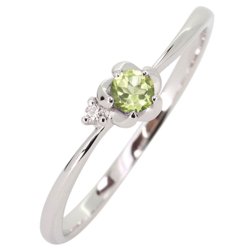 8月誕生石ペリドットを使用した10金製の、フラワー(花)モチーフリング(指輪)です。