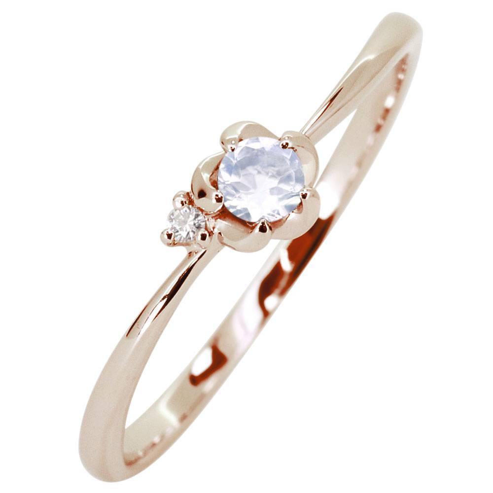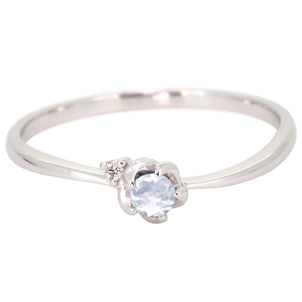 6月誕生石ロイヤルブルームーンストーンを使用した18金製の、フラワー(花)モチーフリング(指輪)です。