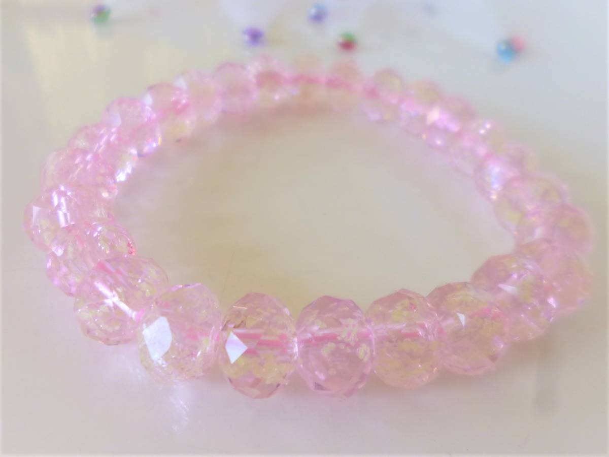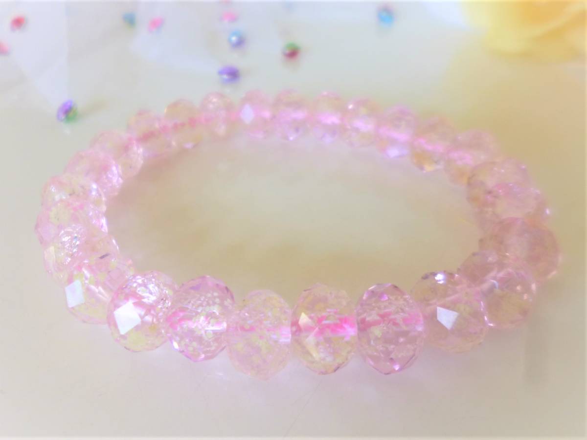 クリアーピンクのガラスに、きらきらのカットが施された可愛らしいとんぼ玉
