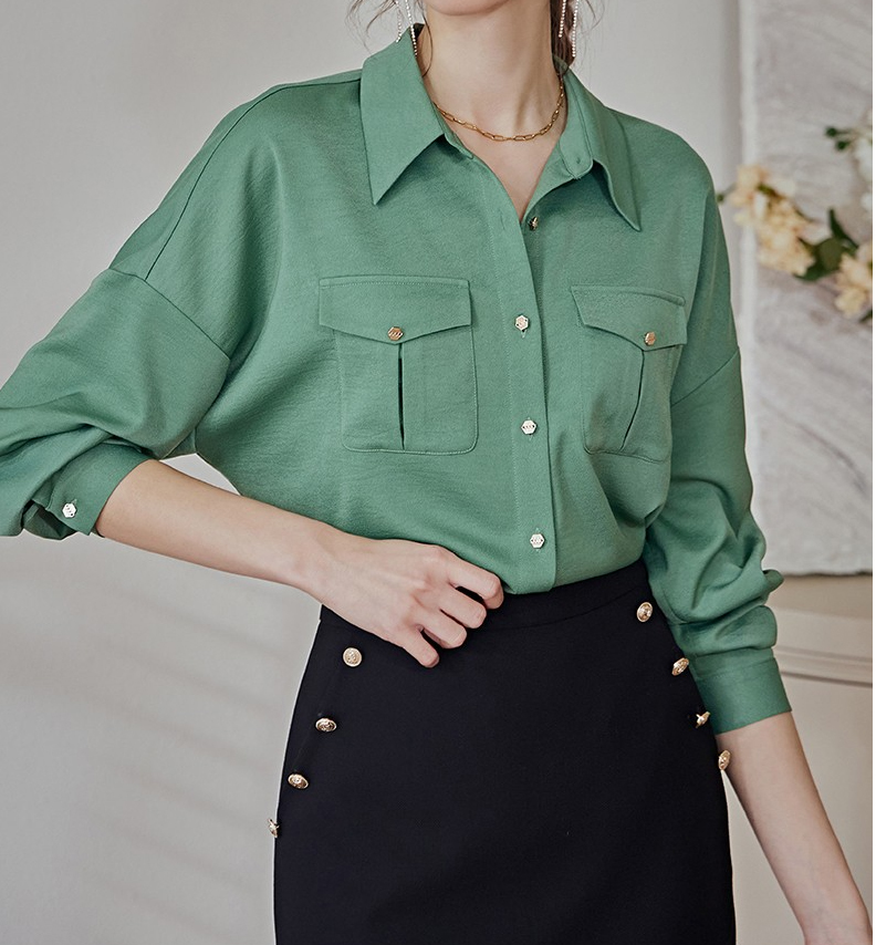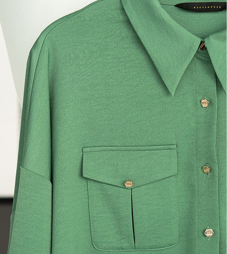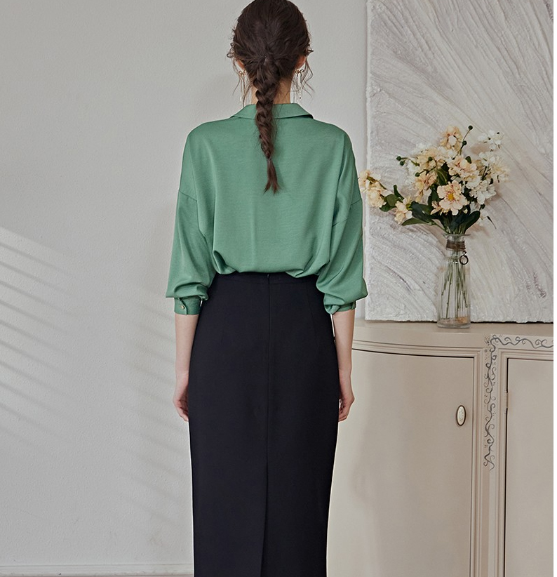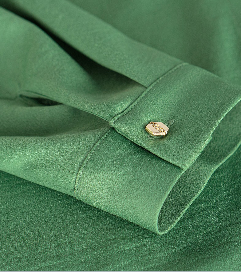 レディースサテンブラウス緑色3XL