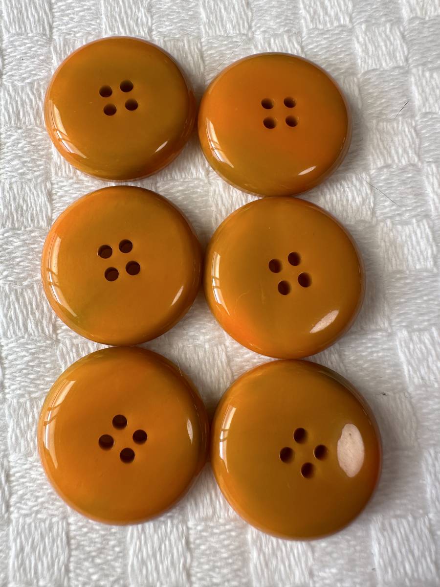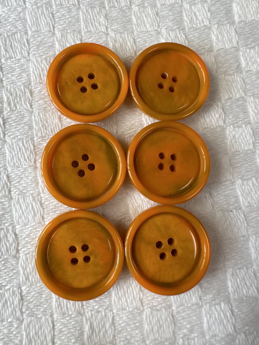 3765 約24㍉  オレンジ茶系  ボタン 6個セット ビンテージ  未使用品 手芸 裁縫 ハンドメイド DIY リメイク