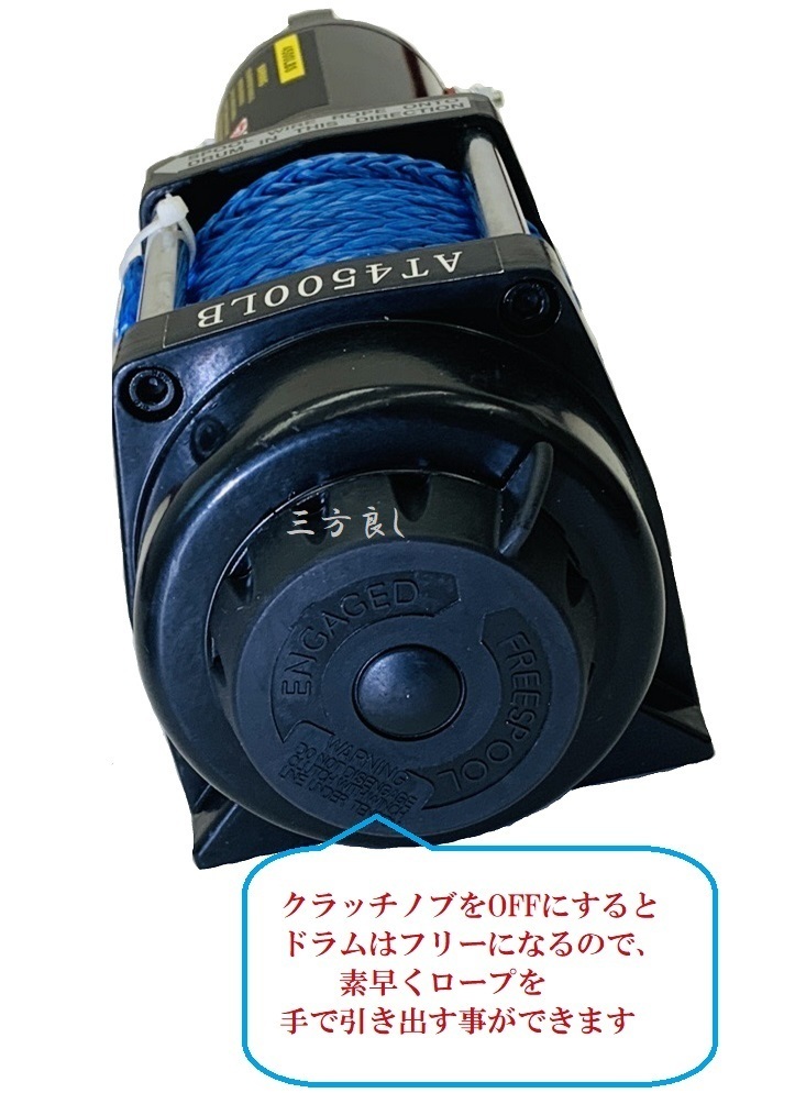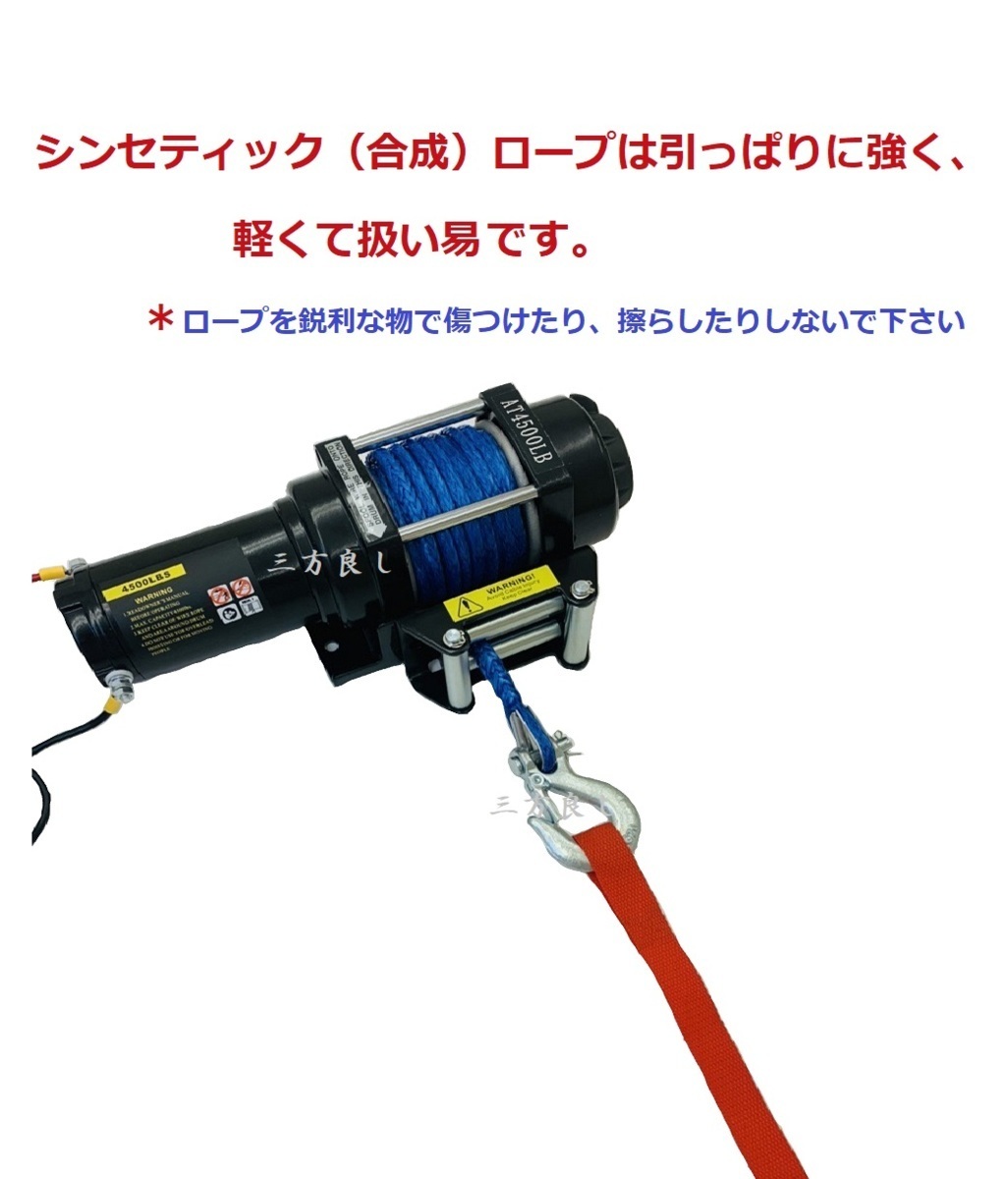電動ウインチ 12V 4500LBS(2041kg)軽量シンセティックロープ 無線/有線リモコン付き 電動 ウインチ オフロード車 トラック SUV車防水仕様