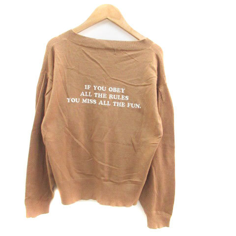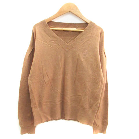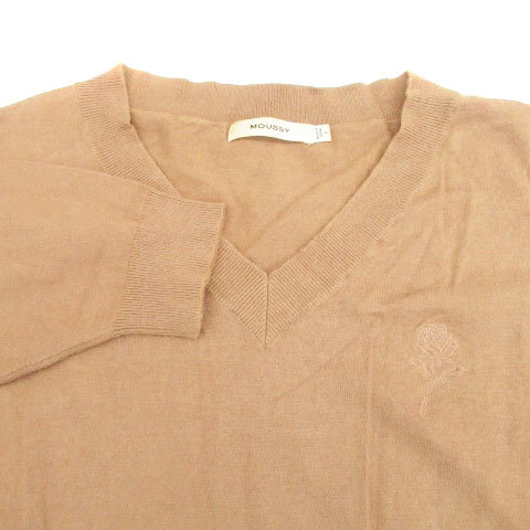 マウジー moussy ニット カットソー Vネック 長袖 刺繍 F 茶色 ブラウン /HO56 レディース