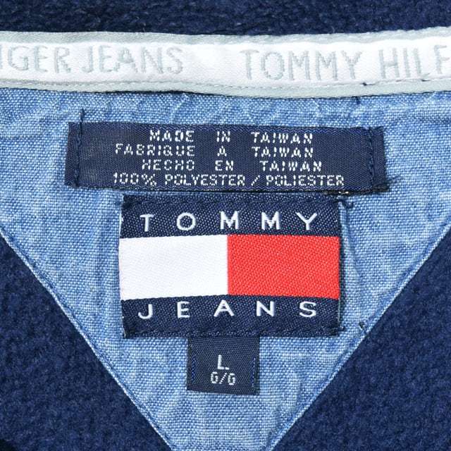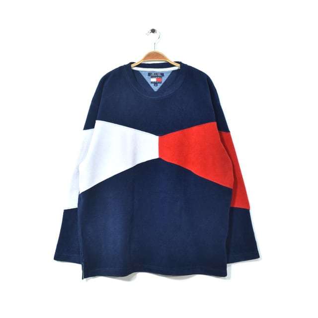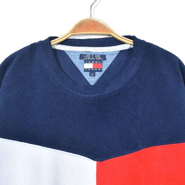 90S トミーヒルフィガー プルオーバーフリース トリコロールカラー ヴィンテージ ビッグフラッグ メンズL TOMMY HILFIGER 古着 @DZ0322