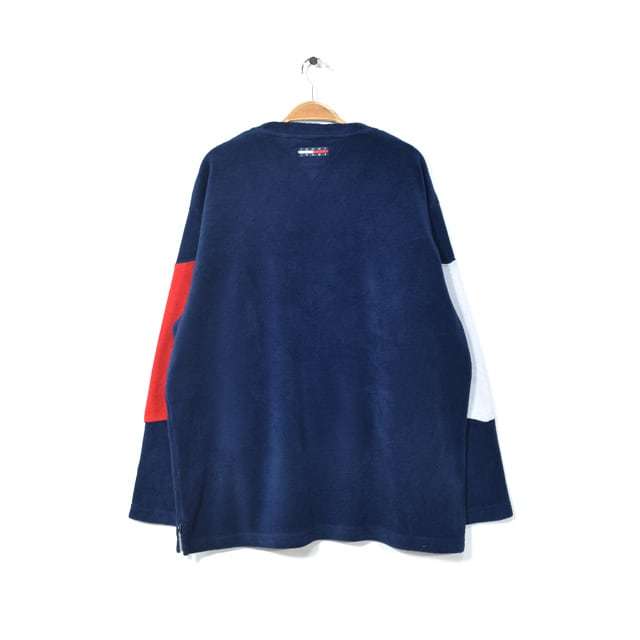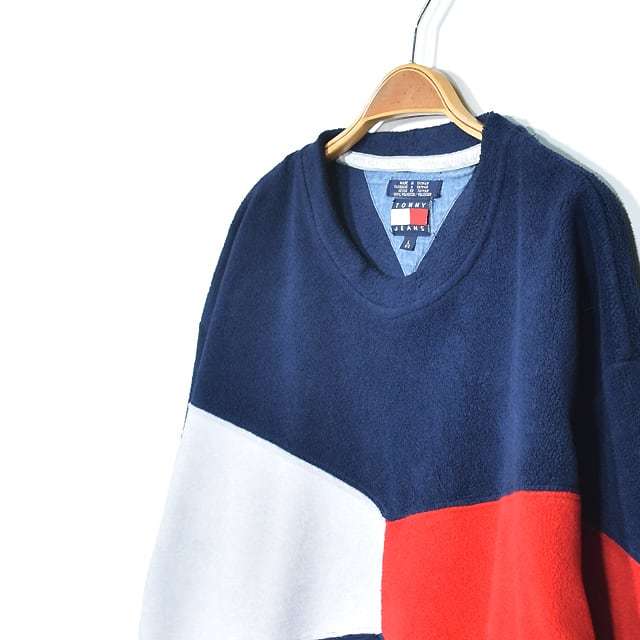 【送料無料】 90S トミーヒルフィガー プルオーバーフリース トリコロールカラー ヴィンテージ メンズL TOMMY HILFIGER 古着 @DZ0322