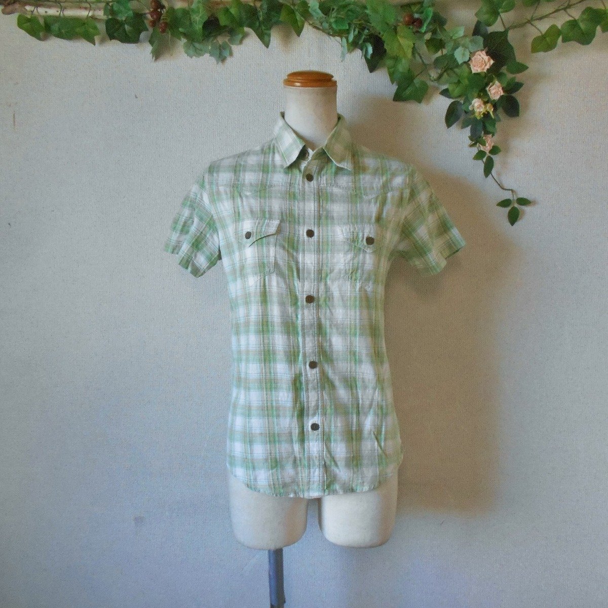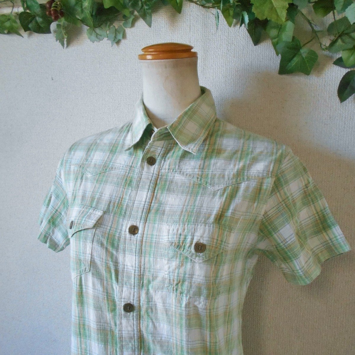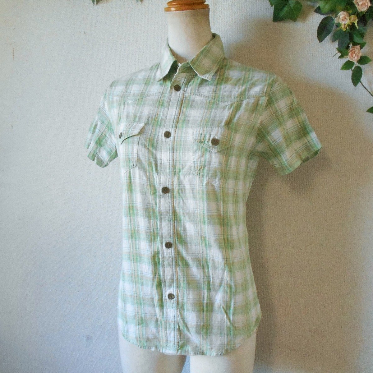 【ポイント】マウジーのレディース用半袖シャツになります。お色は薄いグリーン系のチェック柄で夏を中心に着ていただけるお品です。カジュアルな雰囲気で普段から使いやすい一着です。