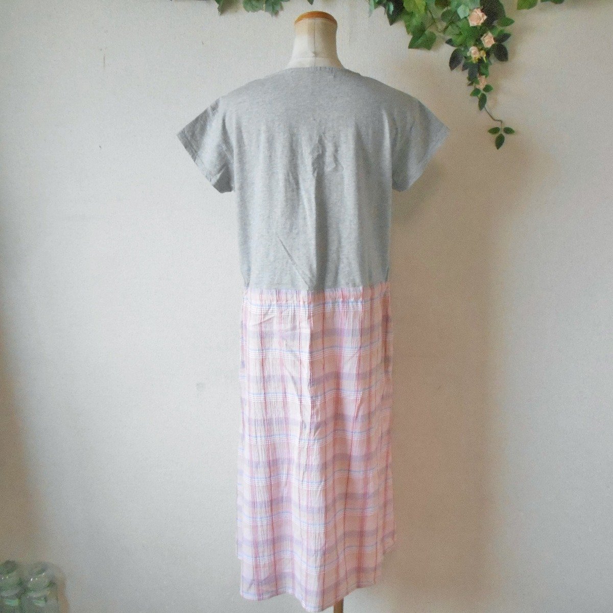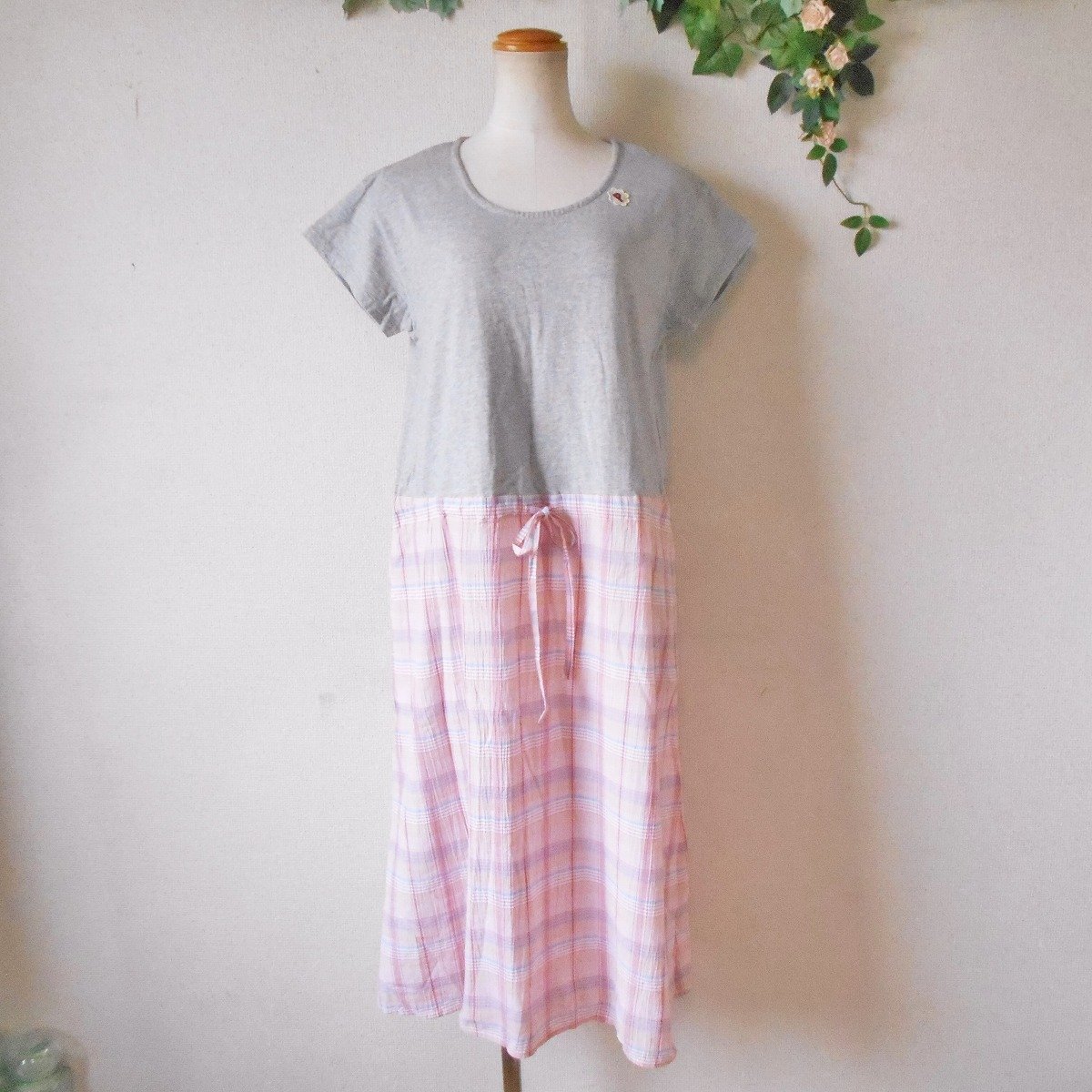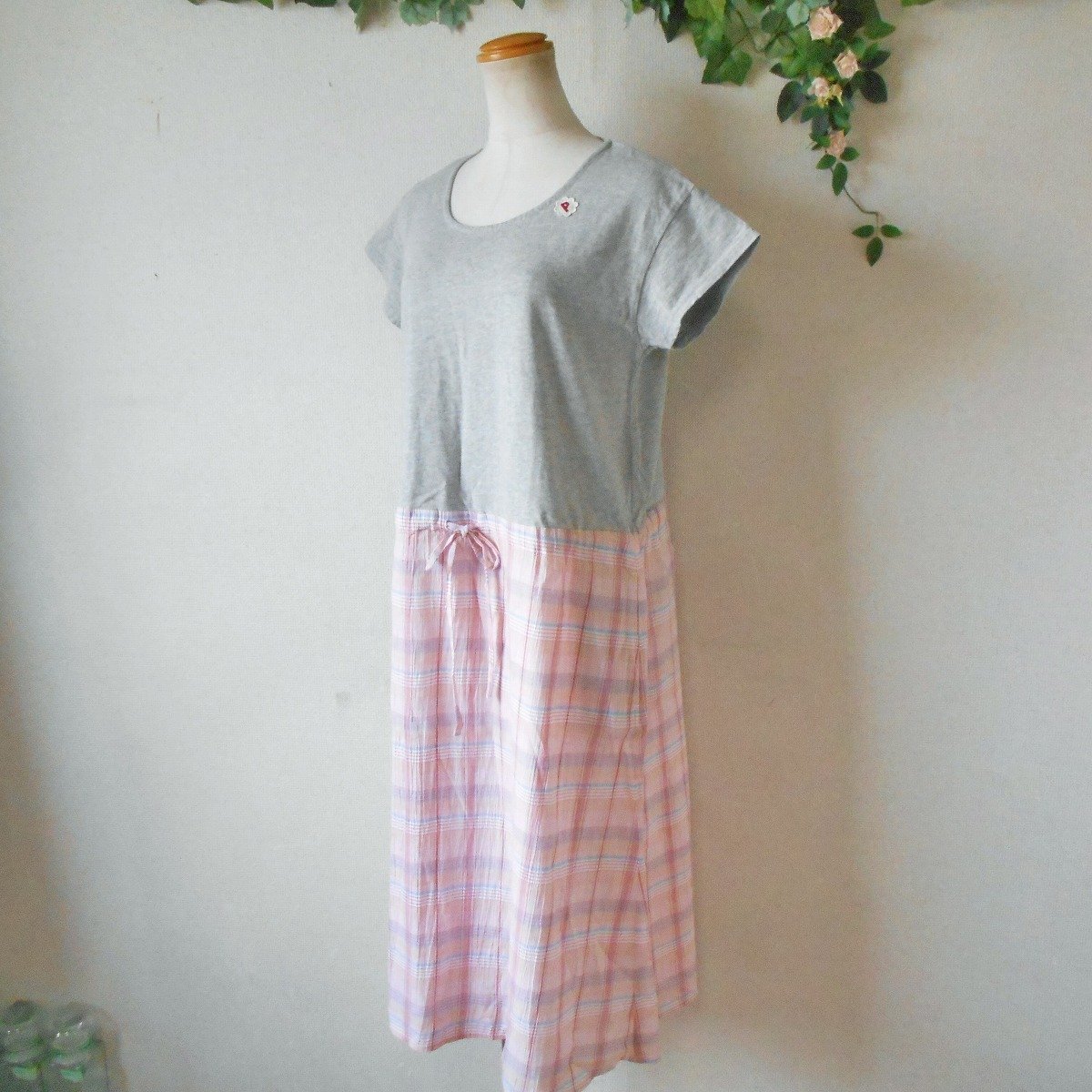 【ポイント】ピンクハウスのワンピースになります。お色は上部がグレーでスカート部分はピンク系のチェック柄の夏を中心に着ていただけるお品です。上下の切替部分にはひもリボンが使用されていて、ブラウジングも可能なとっても素敵な一着です。