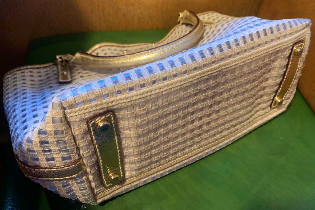 ビニールと麻のような布地のメッシュで、透け感のある涼しげなバッグです