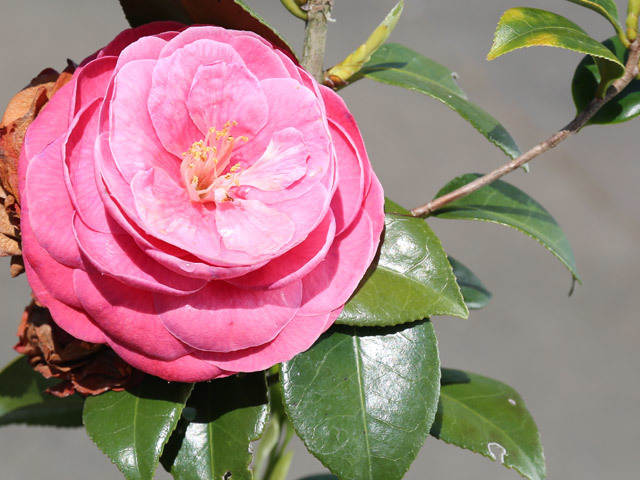 ツバキコウオトメは横枝があまり伸びず放任でも端正な樹形になります。高さは約三メートルほどで止まります。花は3~4月に開花し紅色で八重咲きの綺麗な花をつけます。