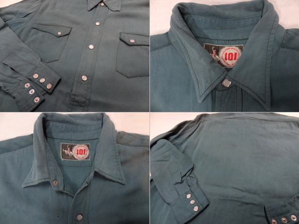 ビンテージ 「101」 50S ウエスタン スナップボタン シャツ レア カラー 緑 グリーン 色褪せ アジ 雰囲気 希少 デザイン カウボーイ 珍品