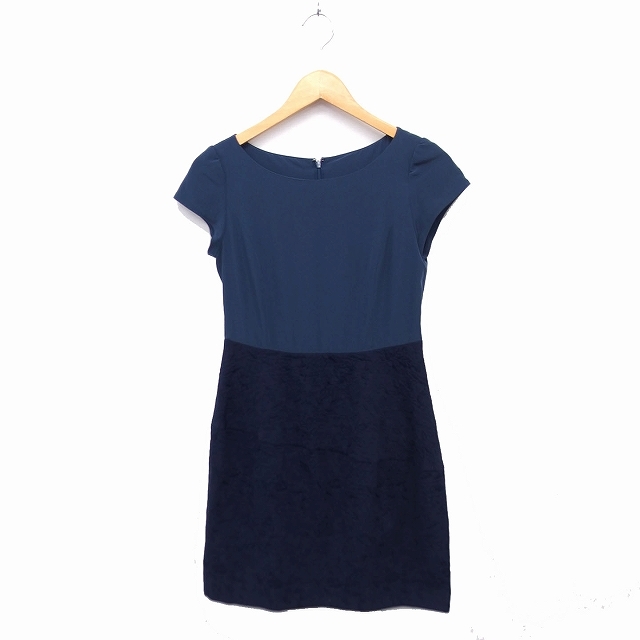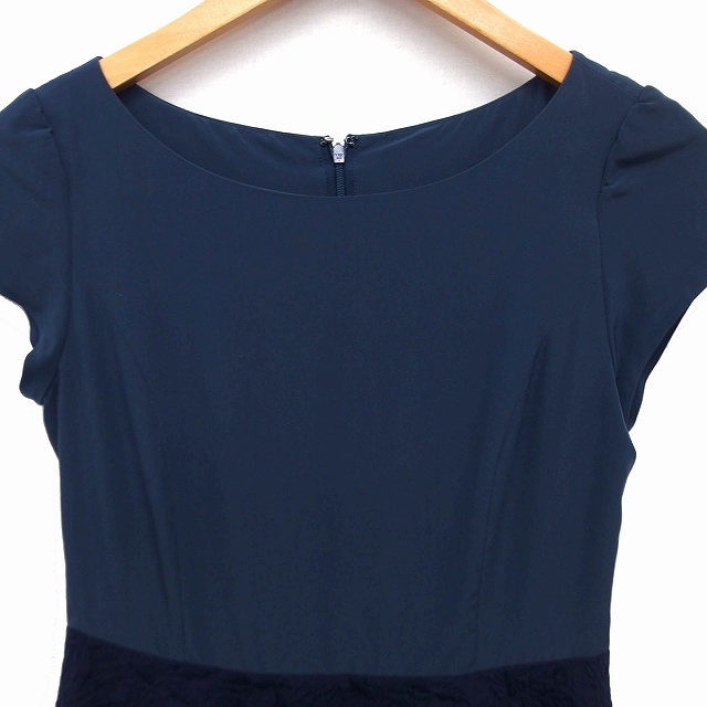 イネド INED 切替 フレアワンピース ひざ丈 キャップスリーブ 7 ネイビー 紺 /FT7 レディース