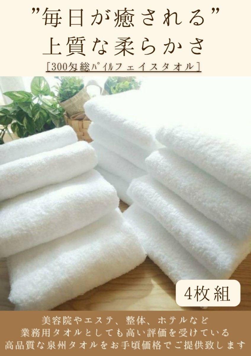 新品泉州タオル 300匁総パイルフェイスタオルセット4枚組 まとめ売り