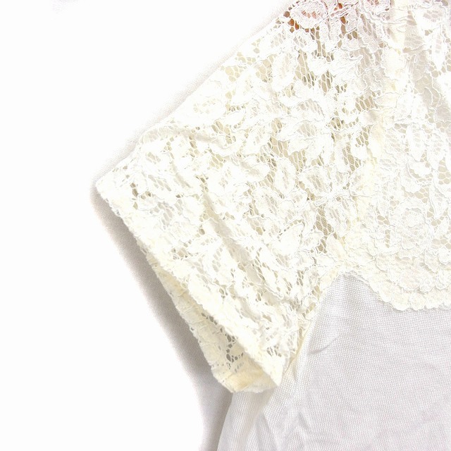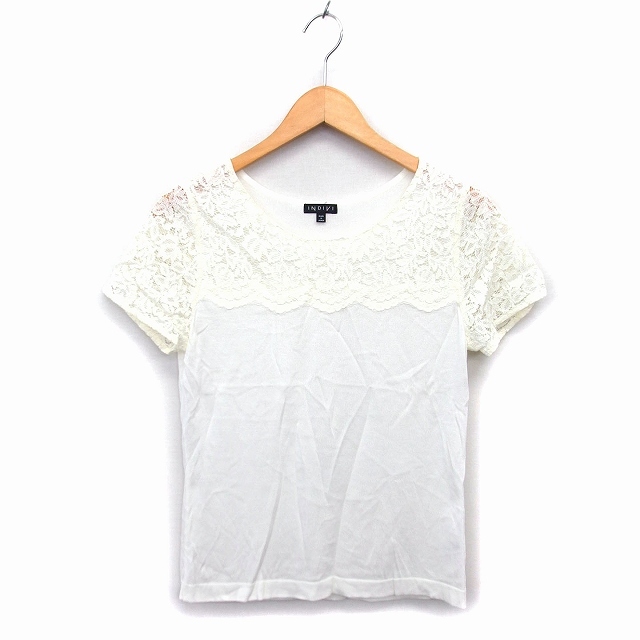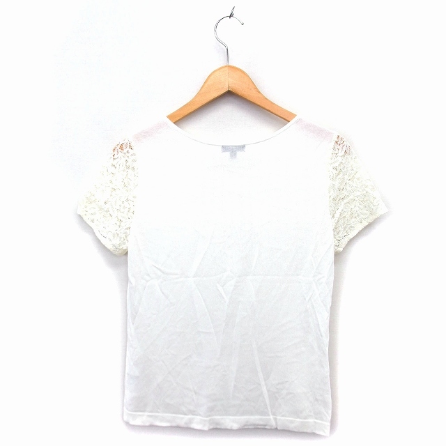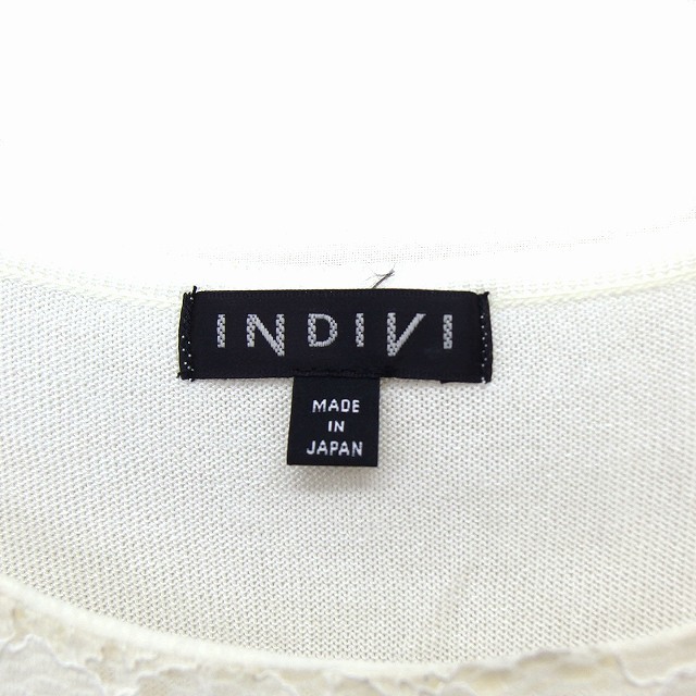 インディヴィ INDIVI カットソー ニット ボートネック レース リブ 透け感 ハイゲージ 半袖 38 オフホワイト /NT8 レディース