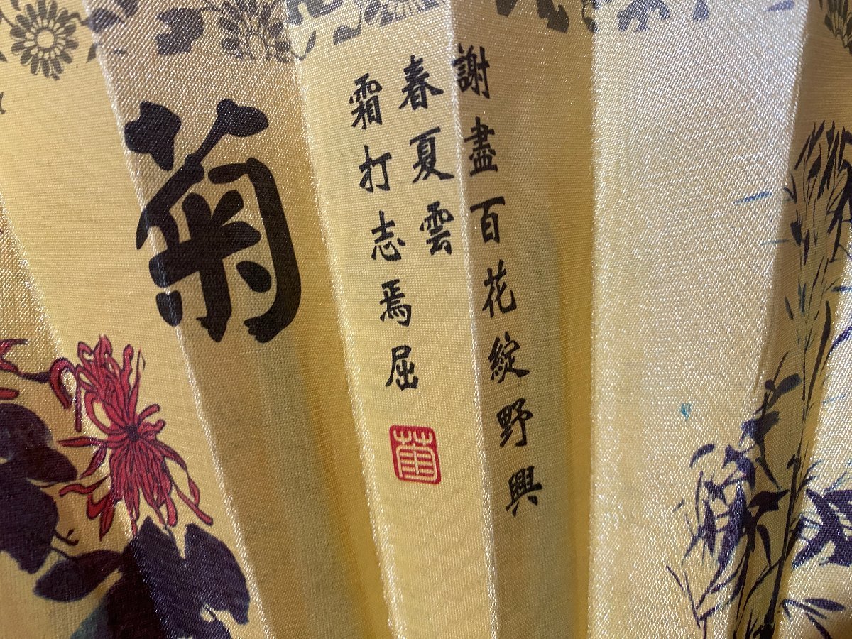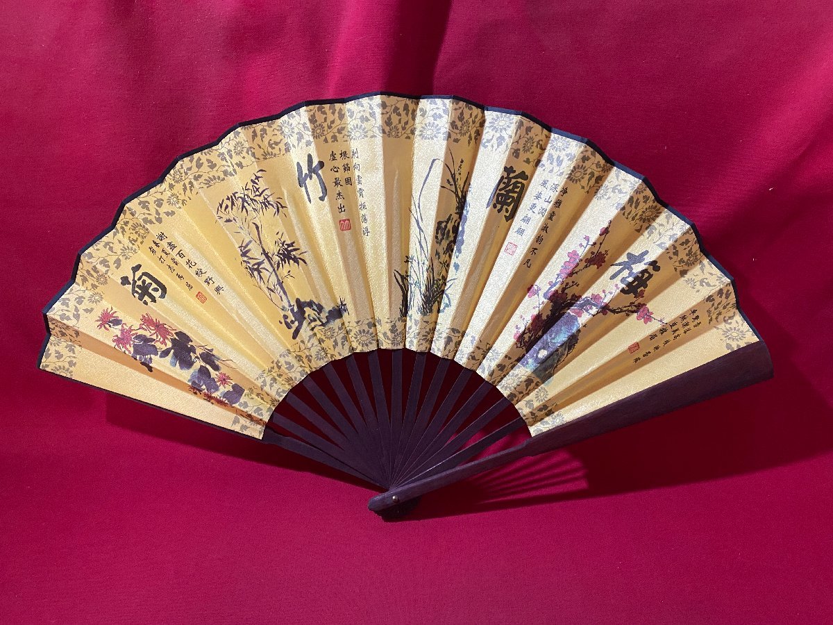 c▼** 扇子 1点 梅 蘭 竹 菊 漢字 漢文 布 33㎝ 飾り / B14上