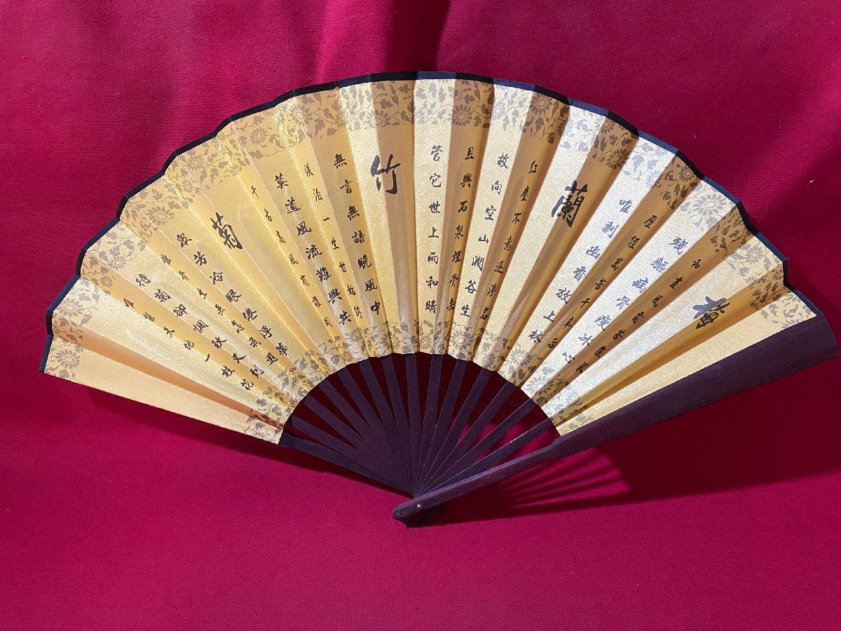 c▼** 扇子 1点 梅 蘭 竹 菊 漢字 漢文 布 33㎝ 飾り / B14上