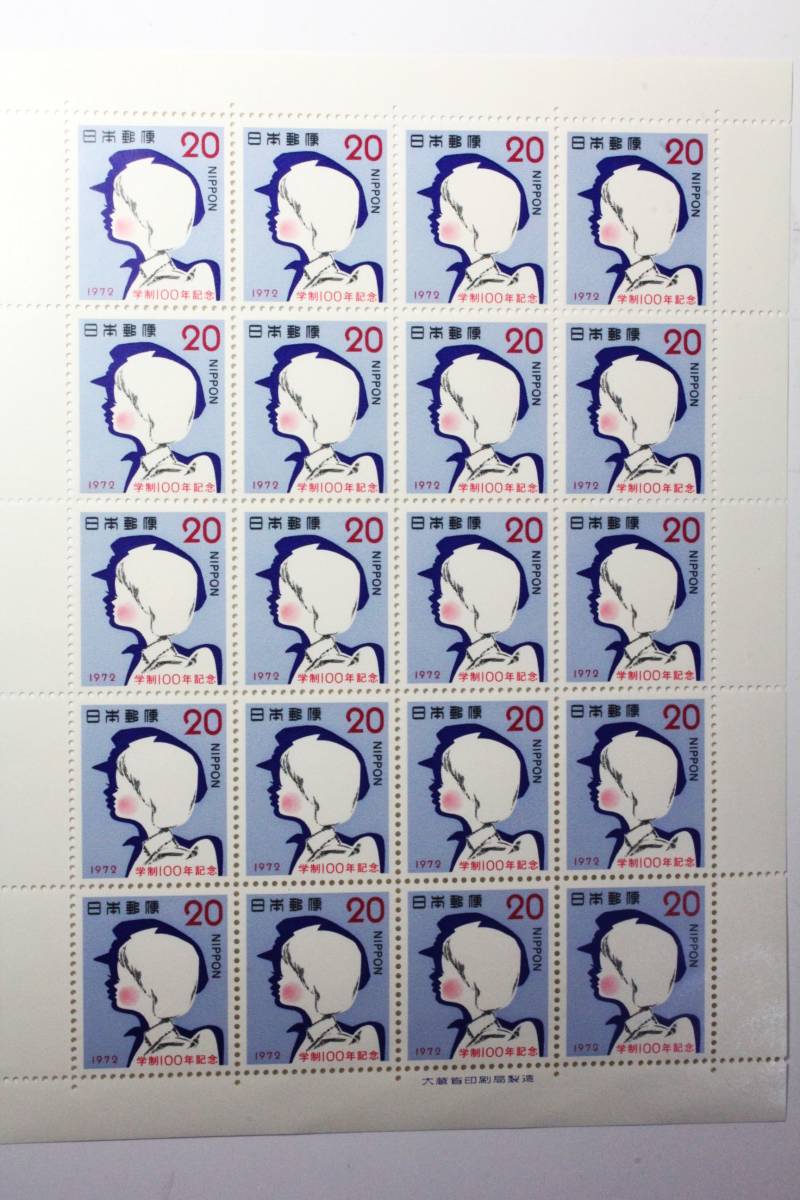学制100年記念 児童の横顔1972年発行の20円切手の20面のシート1枚です。