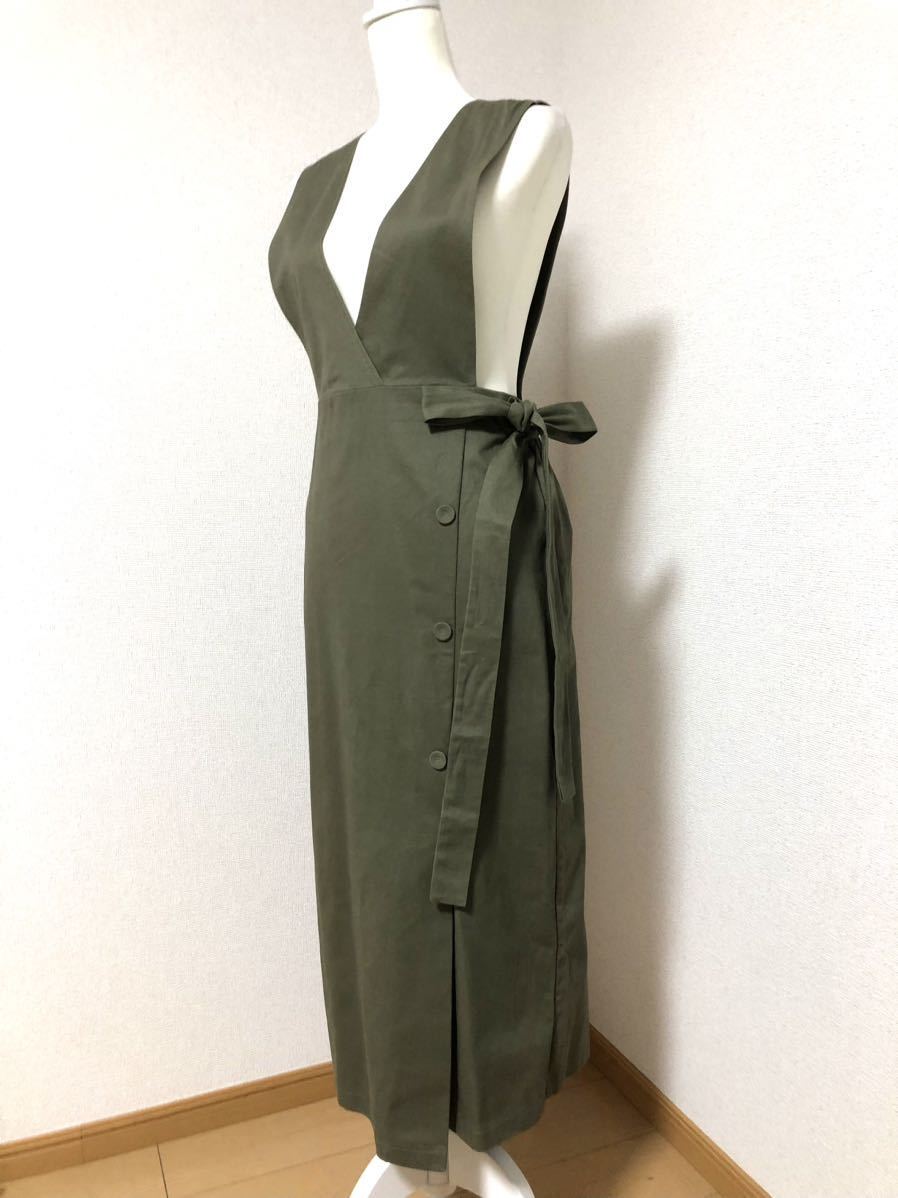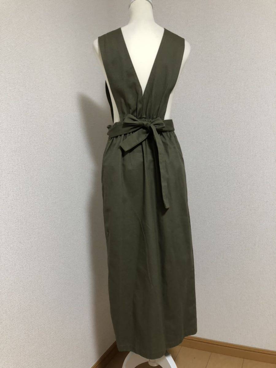 リボンは横、後ろ、前などお好きな形で結んで楽しめます。またウエストをギュッと引き締めることも出来ます。嫌いな方はほどいて外すことも出来ます。前のボタンも可愛くアクセントになっています。春から秋まで長く着用して頂けます。