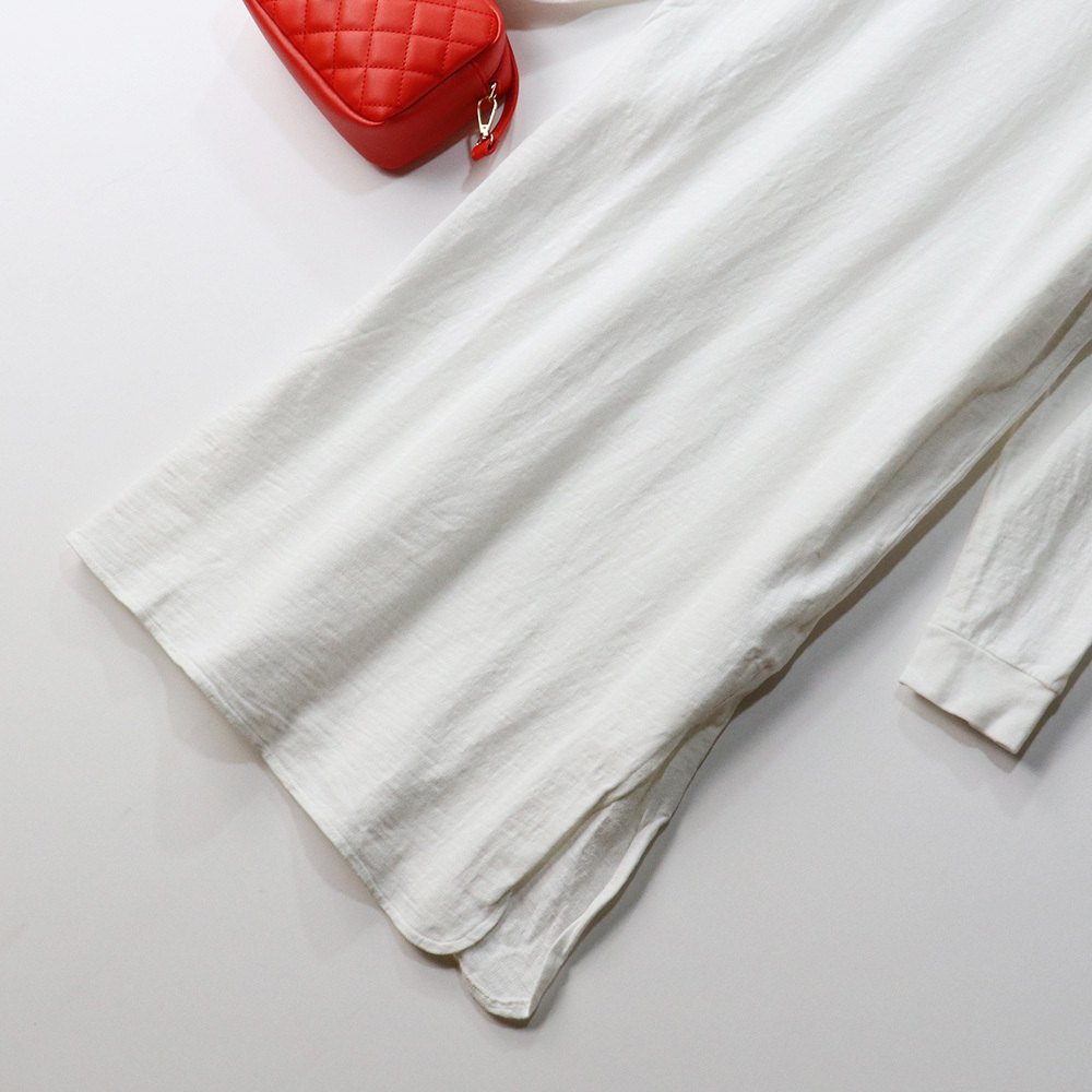 レプシィム LEPSIM 通気性がいい裏起毛 コットン カットソー チュニック ワンピース 長袖 ホワイト 綿100 ミディ丈 ひざ丈 スリット FREE | |||