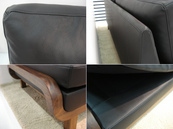高級感あふれるウォールナット無垢材のフレームと、幅の広いシートが特徴のシンプルなソファ。同サイズのソファと比べ、より広いシート幅を確保しゆったりとした設計。また体の触れる部分に本革を使用している為、使い込むほどに味わいが増し、柔らかく身体に馴染みます。また羽毛入りのクッションが醸し出す、ワンランク上の座り心地は大変ゴージャスで申し分ございません。