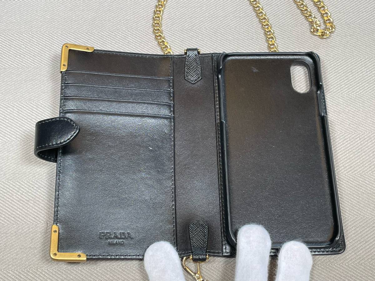 新品未使用、PRADAのiPhone X、XS用レザースマホケースです。