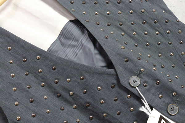 2つ釦のドレッシーなジレにスタッズを組み合わせ、大人っぽく仕上げております。
