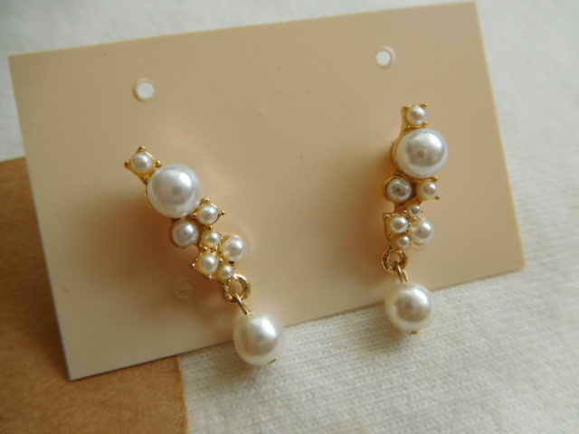 8粒のプラスチックパールと1粒のシェルパールを使いましたピアスです。シェルパールがゆらゆら揺れます。