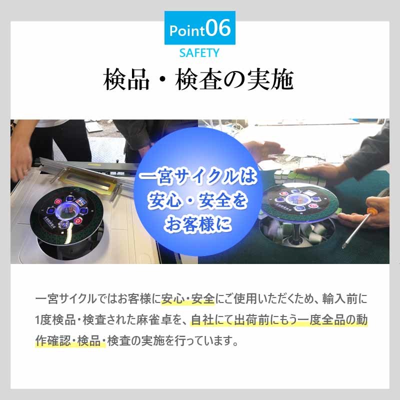 長年の実績のある麻雀卓製造工場で生産され、出荷前全品検査を行っています。