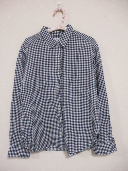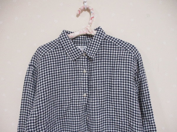 ★ユニクロ★ リネン 長袖シャツブラウス S 紺(30702)レディース