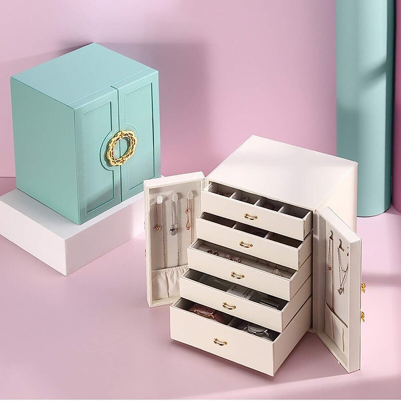 両開きの多収納ジュエリーボックス おしゃれ かわいい ジュエリーケース 大容量 イヤリングケース ホワイト ブルー オレンジピンク