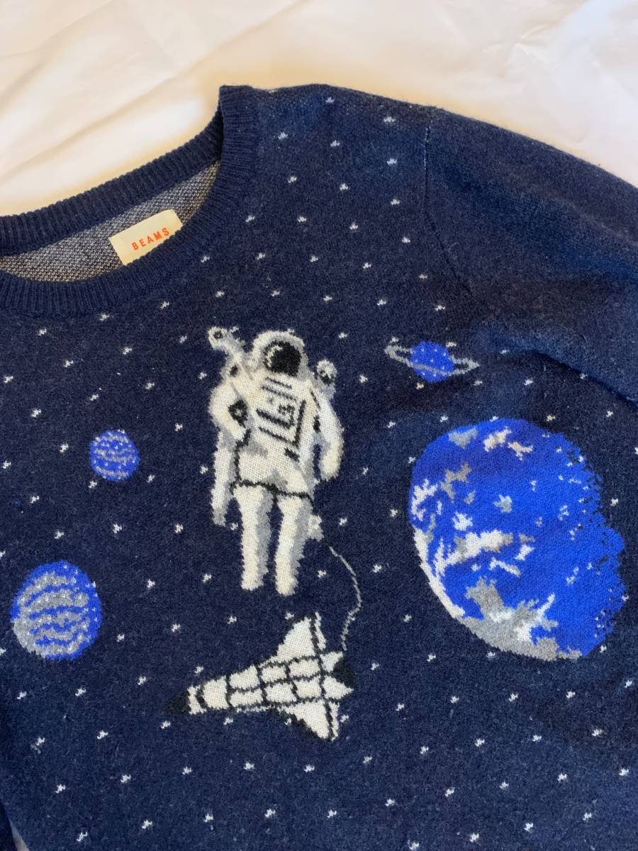 BEAMS ビームス ニット ウール セーター 宇宙 地球 スペース柄 S サイズ メンズ 男性