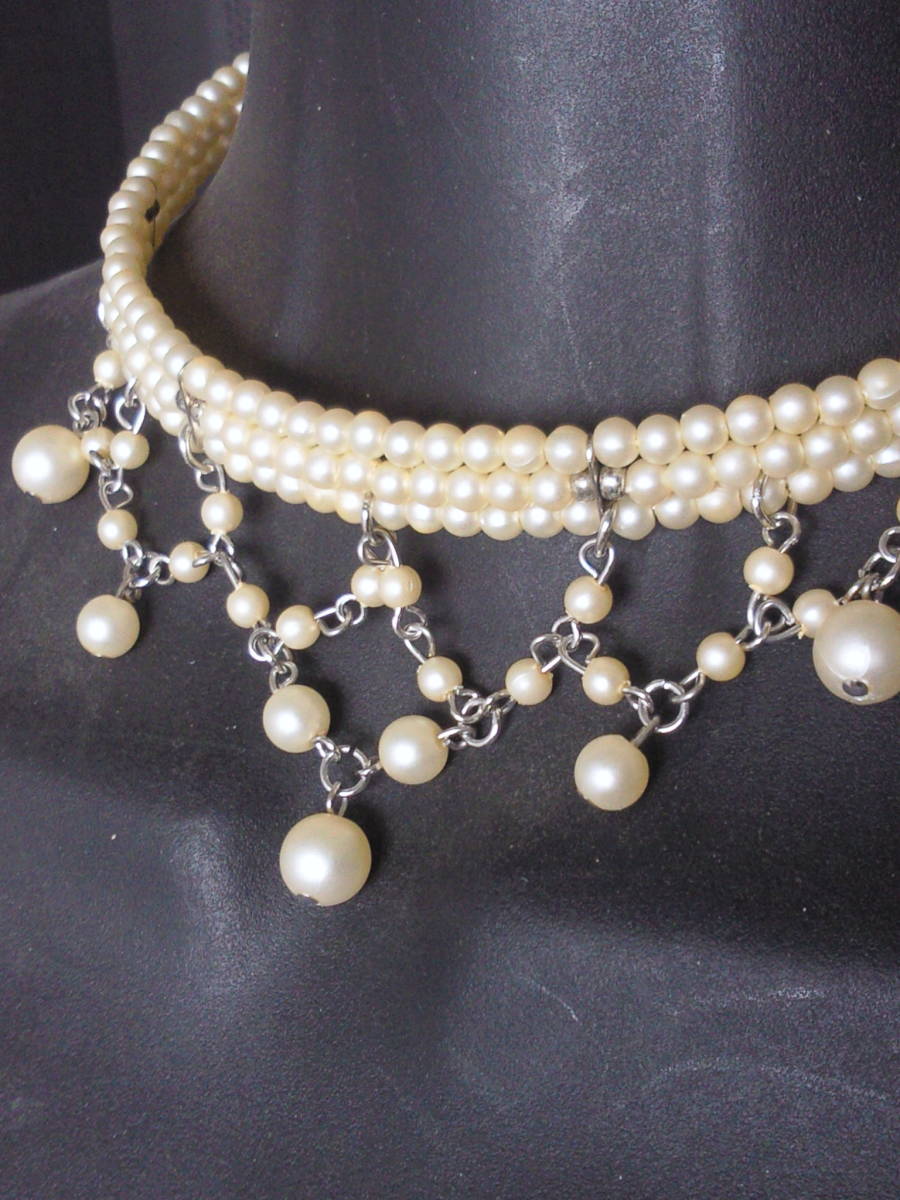 パール姫プリンセス風ネックレス◆揺れる♪真珠チョーカー◆雫ドロップ調ヴィンテージ品コスチュームジュエリーレトロアンティーク送料無料