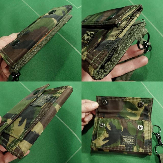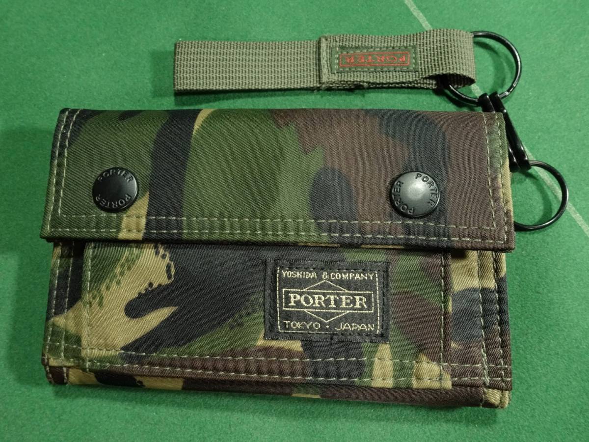 □ポーター(ヘッドポーター) ナイロンツイル素材 キーストラップ付 2つ折り財布 ウッドランドカモ迷彩 ほぼ未使用!!!□
