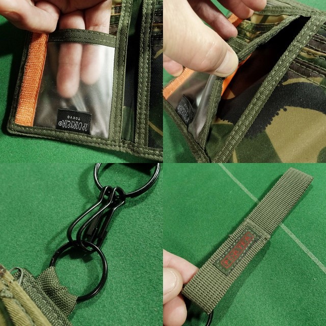 □PORTER(HEAD PORTER) ナイロンツイル素材 2連キーストラップ付 2つ折り財布 ウッドランドカモ迷彩 ほぼ未使用です。