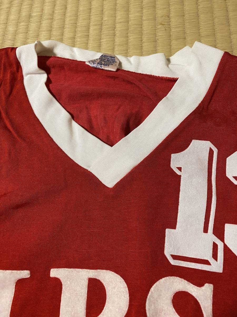 デザイン 細身です。昔、デビットベッカムが着用していた。サッカーのユニフォームみたいです。