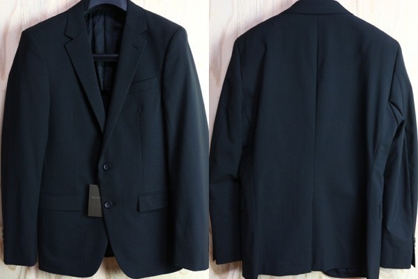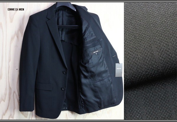 新品 コムサメン 春夏 小紋ドビー シャドーストライプ ジャケット S 黒/定価5万円/COMME CA MEN/