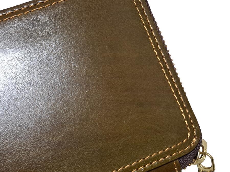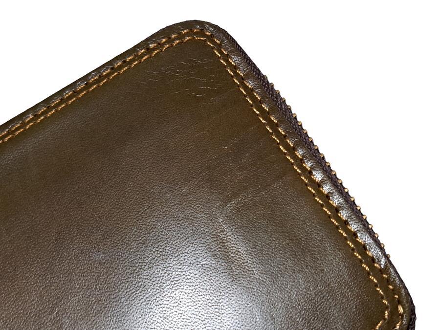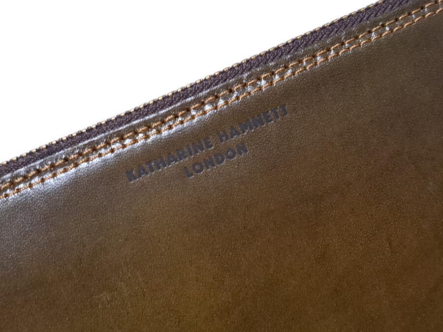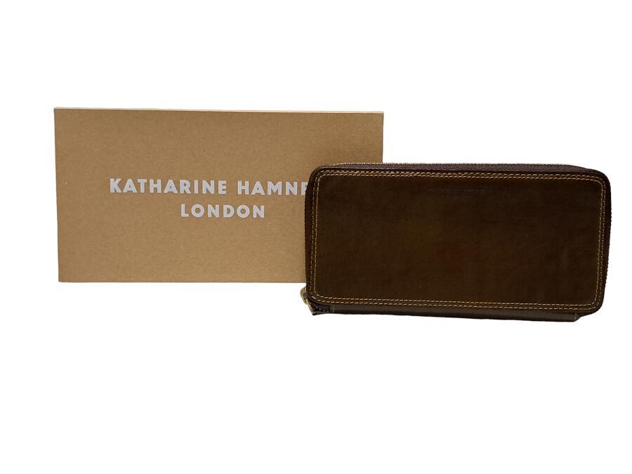 キャサリンハムネット ロンドン 財布 長財布 メンズ ラウンドファスナー オリーブ カーキ レザー 【中古】