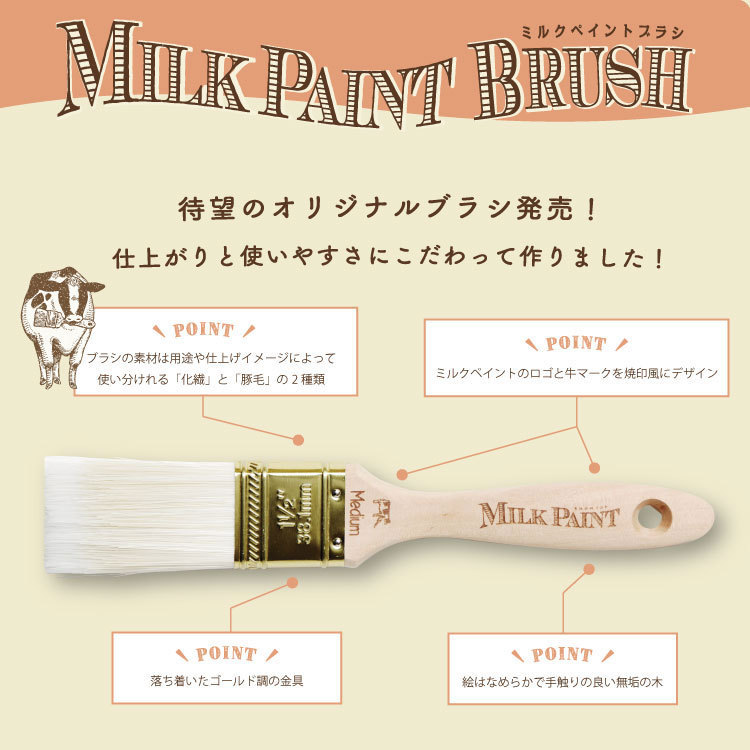 アイアンペイントやミリタリーペイントにもこのミルクペイント用のハケはオススメなので、2種類とも持ってると大活躍してくれますよ!キャンディタワーで販売中です。