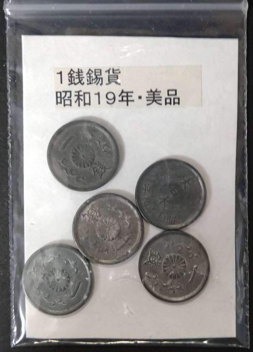 1銭錫貨・昭和19年(5枚)です。