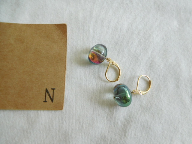 エッグ型ガラスビーズピアス イヤリング ハンドメイドピアス