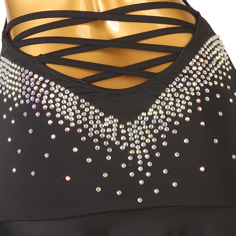 新品 レディース社交ダンス衣装 ラテンドレス ダンス練習試合ワンピース ライトストーン+フリンジ飾 ブラック 上品新作 S~XXL