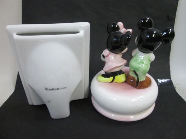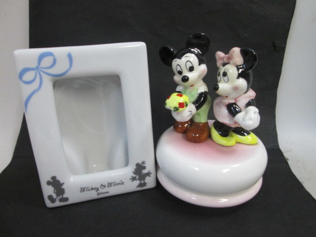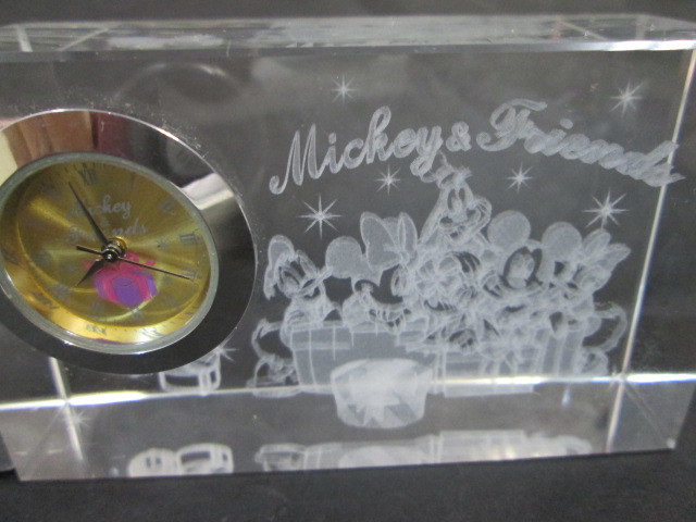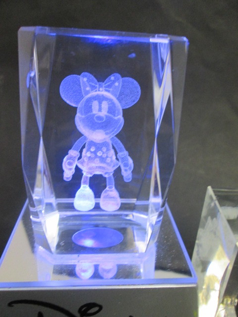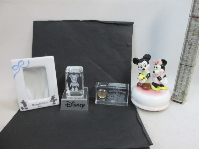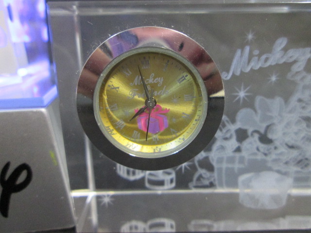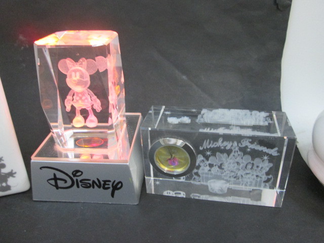 ミニー&ミッキー 3D クリスタル光が変化する 置物+クリスタルクロック時計(テストOK)+陶器オルゴール+フォトフレーム 4個で