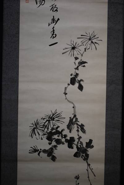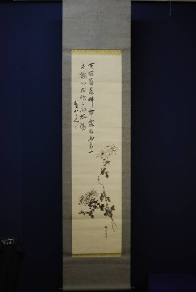 【不詳】//作者不詳/菊画賛/もみ表装/布袋屋掛軸HB-798